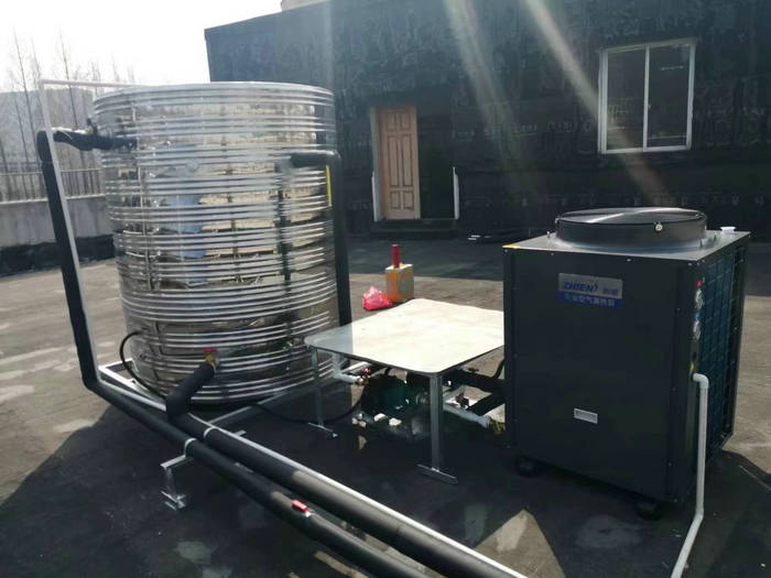 杭州康復(fù)醫(yī)院熱水系統(tǒng)采用了5P智恩空氣能熱泵熱水機+不銹鋼保溫水箱。主要設(shè)備有:1臺5匹智恩空氣能熱水機(ZN-KFDX-050Ⅱ)+2噸不銹鋼保溫水箱(內(nèi)膽304不銹鋼,外膽201不銹鋼,保溫厚度50MM)