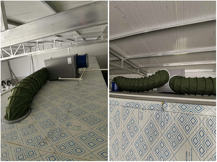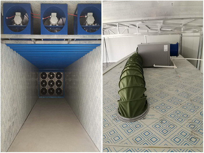 陜西咸陽武功縣金銀花烘干系統(tǒng)(金銀花烘干機(jī)+金銀花烘干房):一體式熱泵烘干機(jī)組:15匹,烘干房:2.2*9.6*2.3。