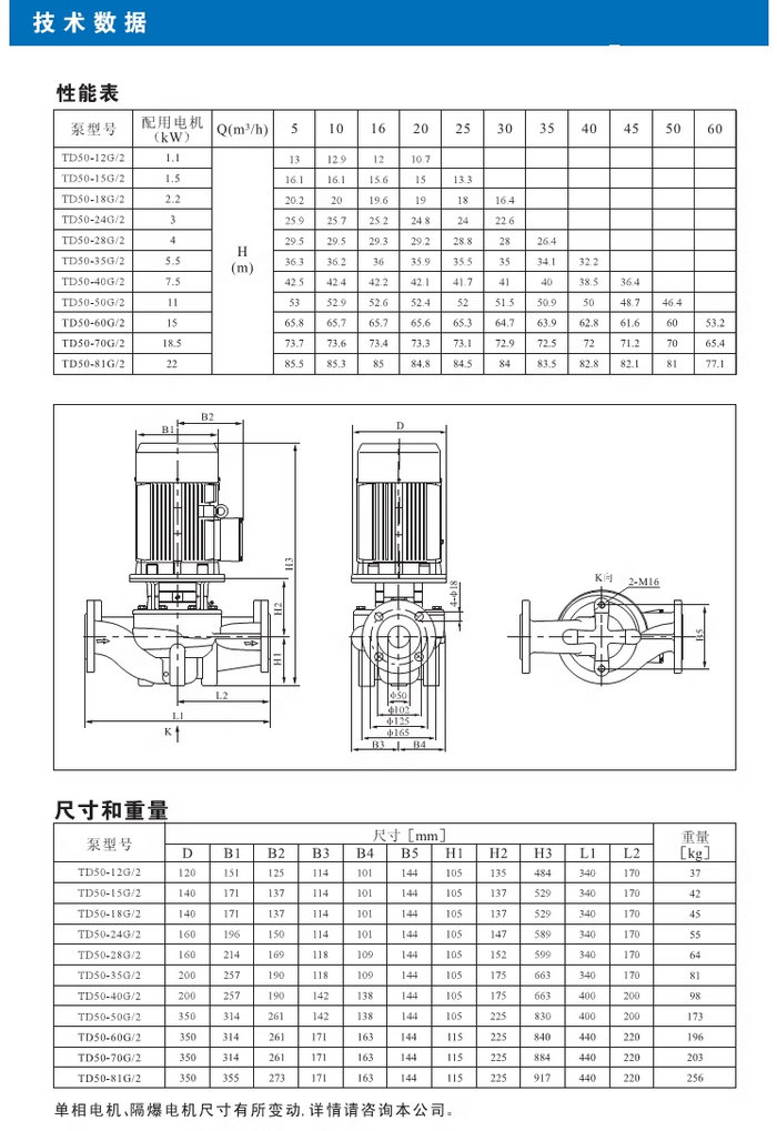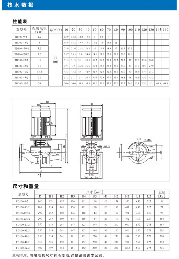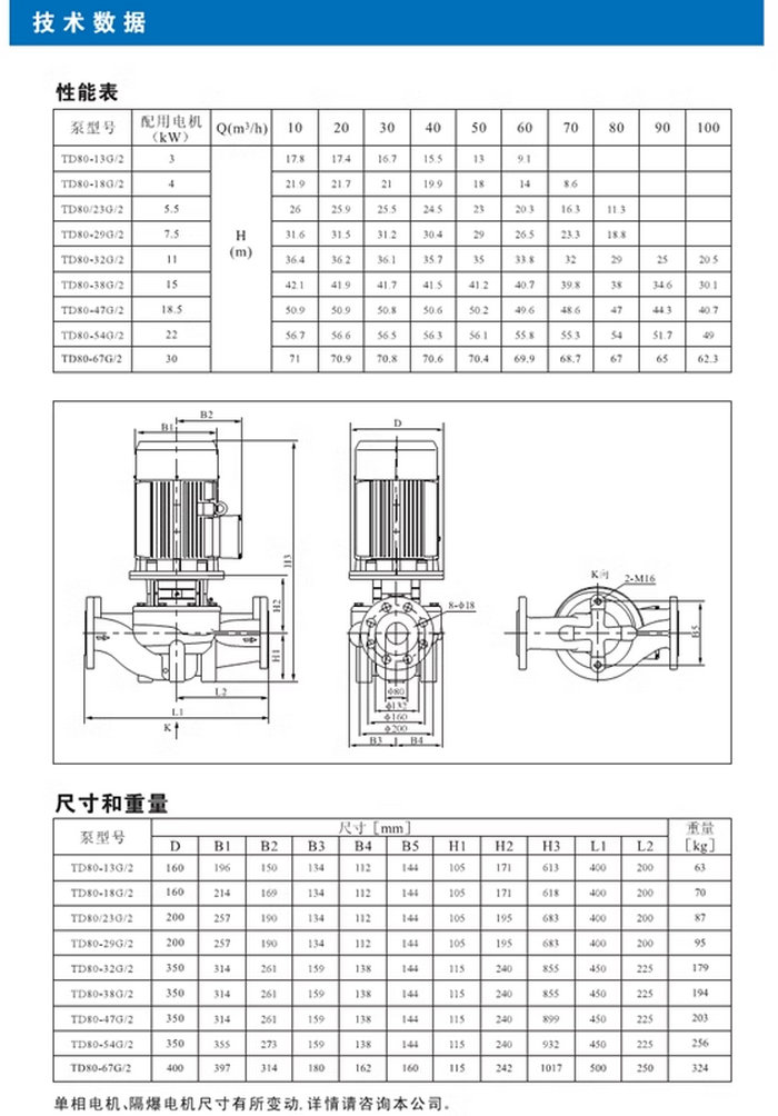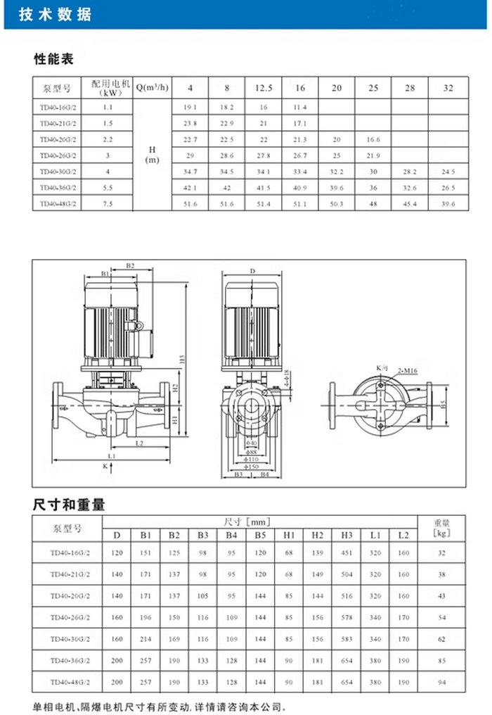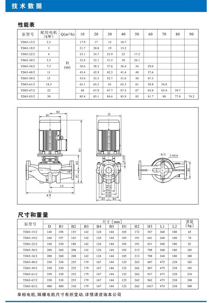 【南方】TD系列管道循環(huán)泵技術(shù)數(shù)據(jù)、性能參數(shù)、尺寸和重量