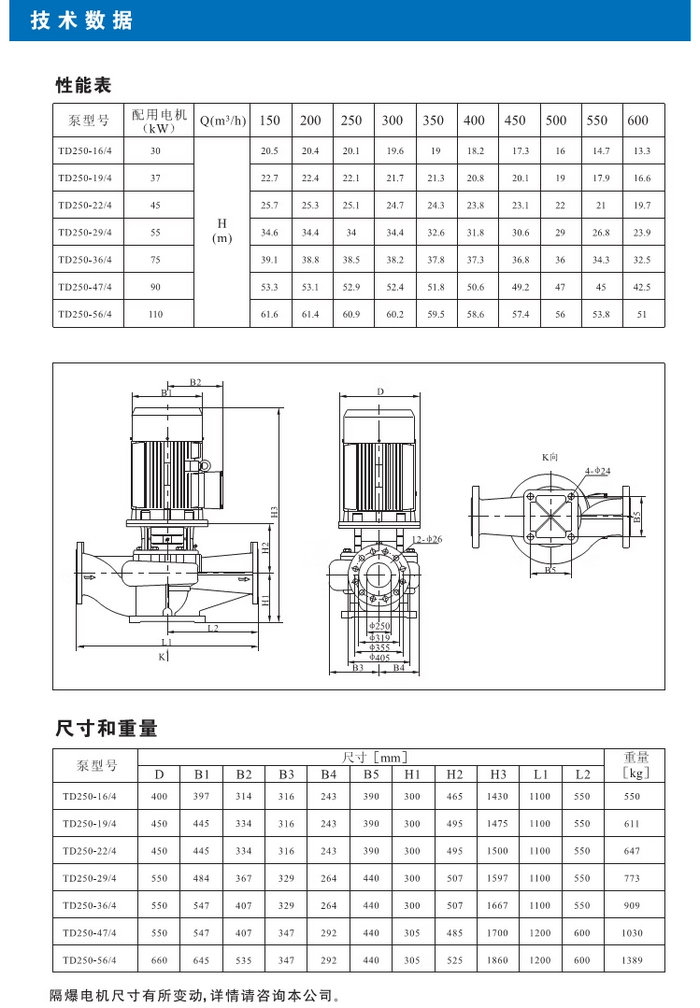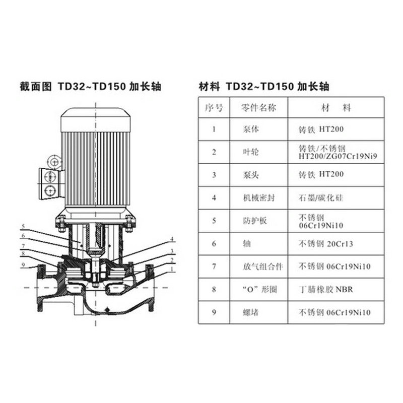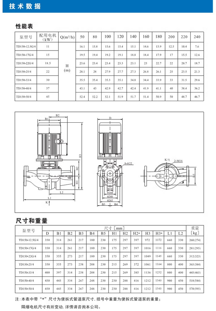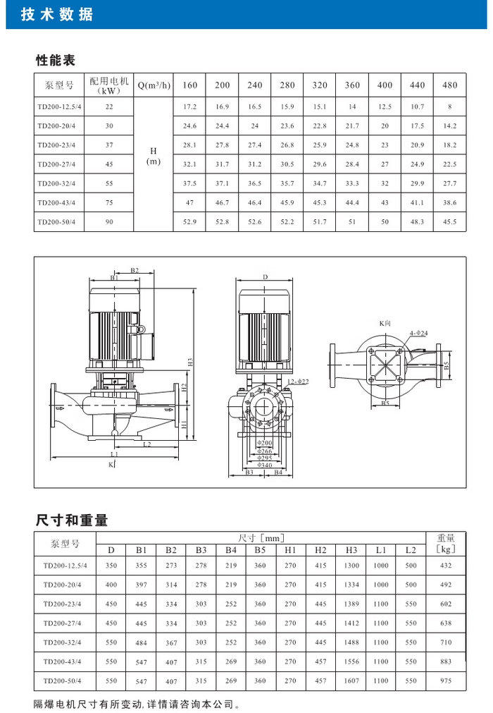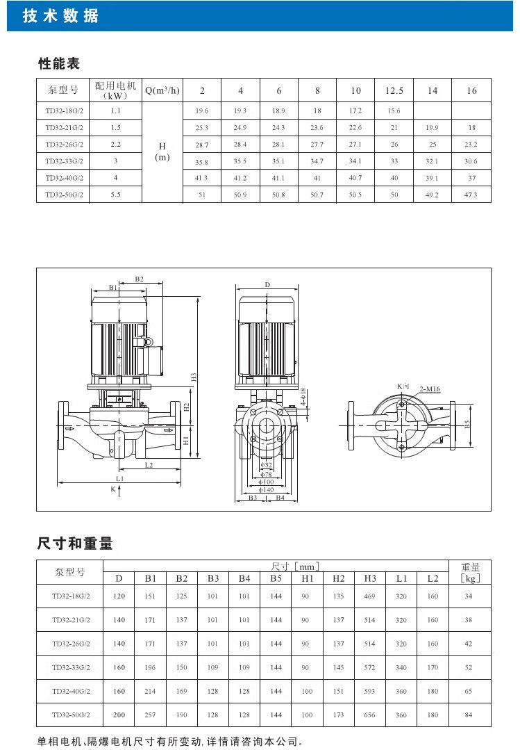 【南方】TD系列管道循環(huán)泵技術(shù)數(shù)據(jù)、性能參數(shù)、尺寸和重量