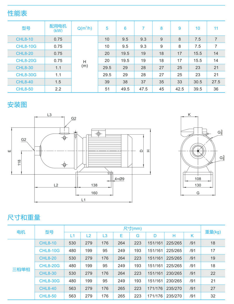 南方臥式不銹鋼多級(jí)離心泵CHL8-10/20/30/40/50