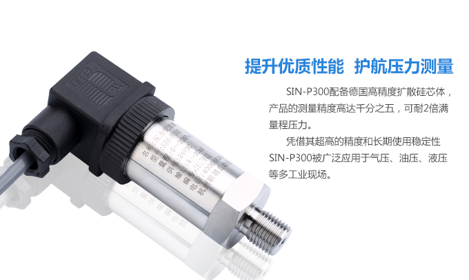 SIN-P300通用型壓力變送器德國進口硅芯片,精度高性能穩(wěn)定;SIN-P300型通用型壓力變送器采用擴散硅壓力芯體作為敏感元件,內(nèi)置處理電路將傳感器毫伏信號轉(zhuǎn)換成標(biāo)準(zhǔn)電壓﹑電流信號輸出,可直接與計算機、控制儀表﹑顯示儀表等相連。選用高穩(wěn)定性和高可靠性的壓阻式壓力傳感器和高性能的變送器專用電路,整體性能穩(wěn)定可靠,可進行遠距離信號傳輸。采用一體化全不銹鋼結(jié)構(gòu),經(jīng)過多次不銹鋼焊接,實現(xiàn)了全固態(tài)設(shè)計,安裝方便,具有高抗振性和抗擊性,在惡劣環(huán)境中可以長期使用。廣泛應(yīng)用于工業(yè)自動化設(shè)備配套以及石油、化工、冶金、電力等控制領(lǐng)域。